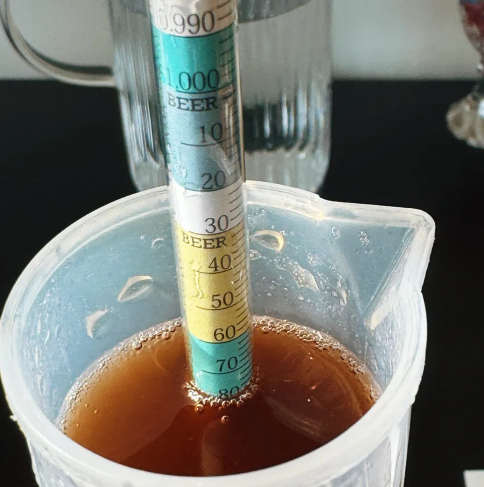 -Cuando las levaduras fermentan y convierten los azúcares en alcohol, el número baja, normalmente hasta 0.990–1.000 en un vino o sidra seca.