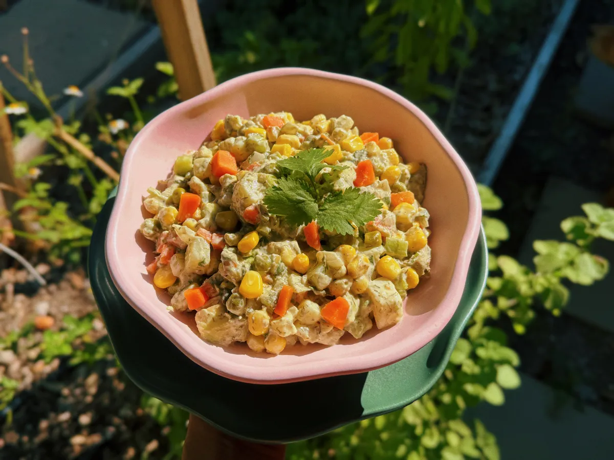 Ensalada fresca de papa con mayonesa casera, zanahoria, elotito y chícharo! Así es, como esa ensalada que te...